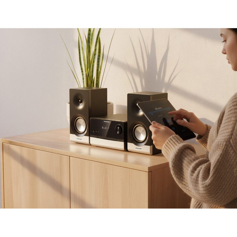 Kompaktiška mikro garso sistema su 100 W RMS galia (2 × 50 W) ir maksimalia 300 W išvesties galia užtikrina aukštos kokybės garsą bet kokiame interjere.