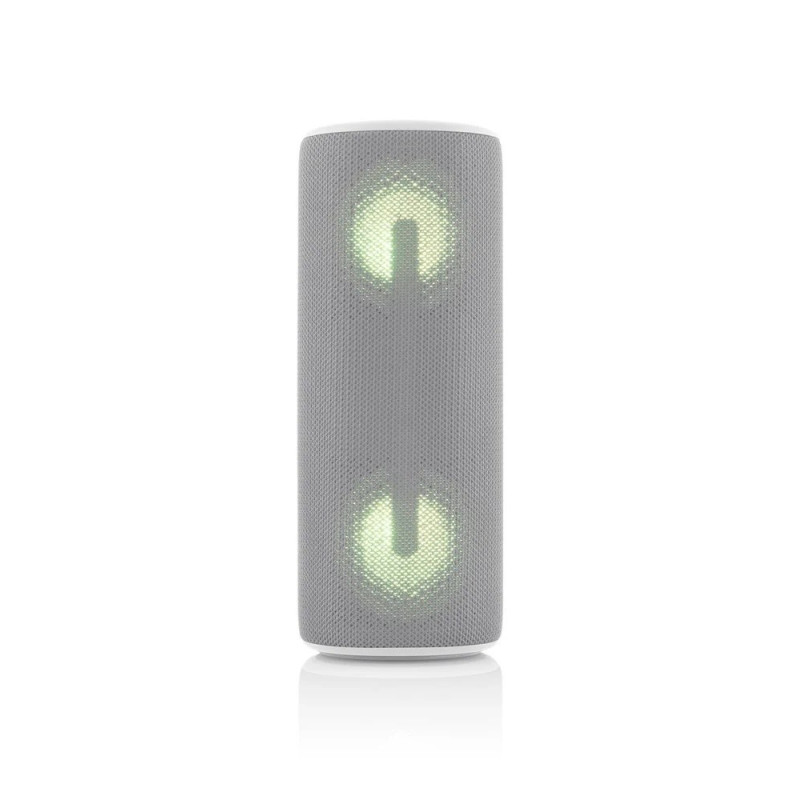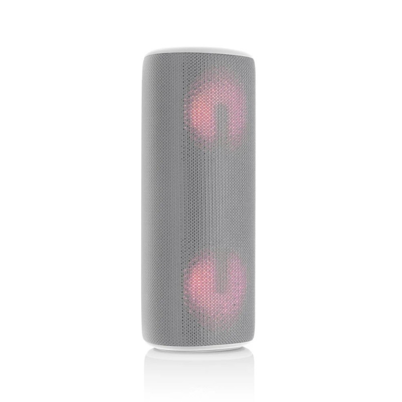 | Dizainas ir konstrukcija | Nešiojamas stereo su pilka apdaila, šviesos efektais ir IPX5 vandeniui atsparus |