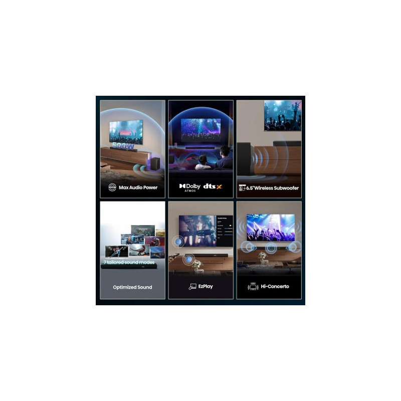 | Skaitmeniniai garso formatai | AAC, MP3, WAV, WMA, FLAC, Dolby Digital, DTS:X, Dolby Atmos |