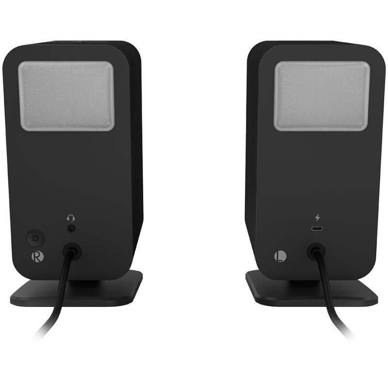 „Klipsch ProMedia Lumina 2.1“ žaidimų garso sistema su žemųjų dažnių garsiakalbiu ir LED apšvietimo efektais, juoda