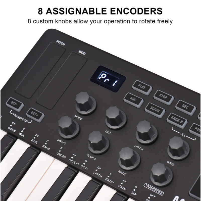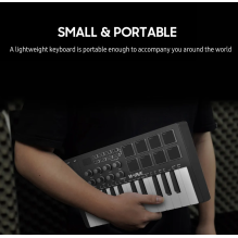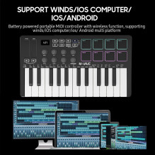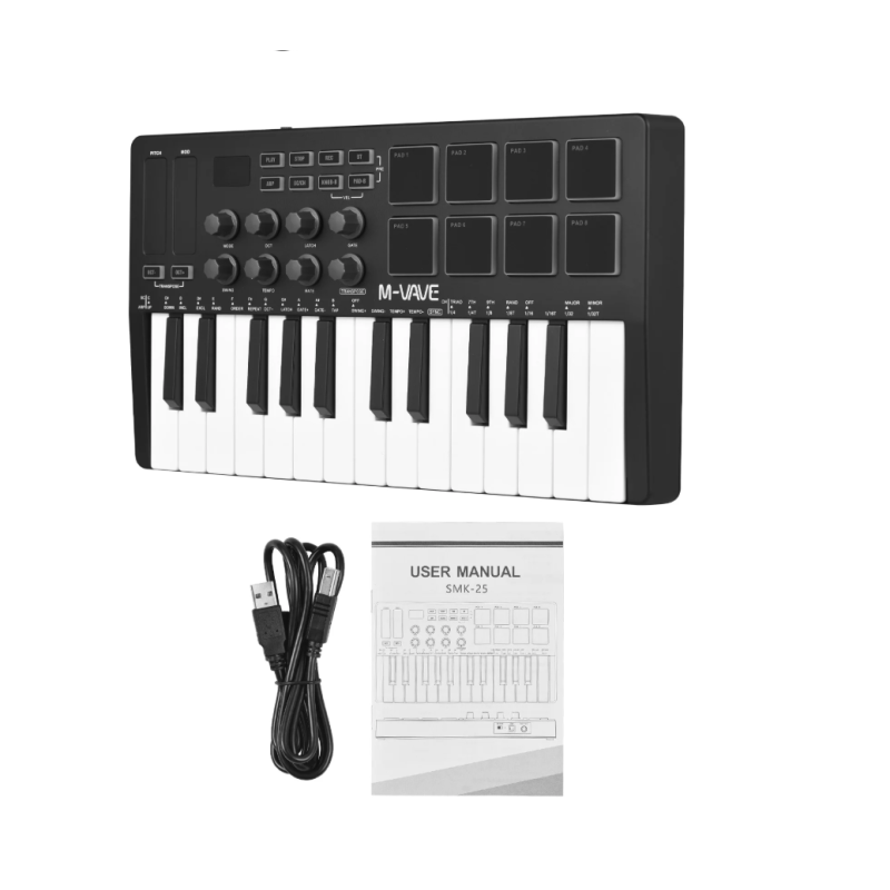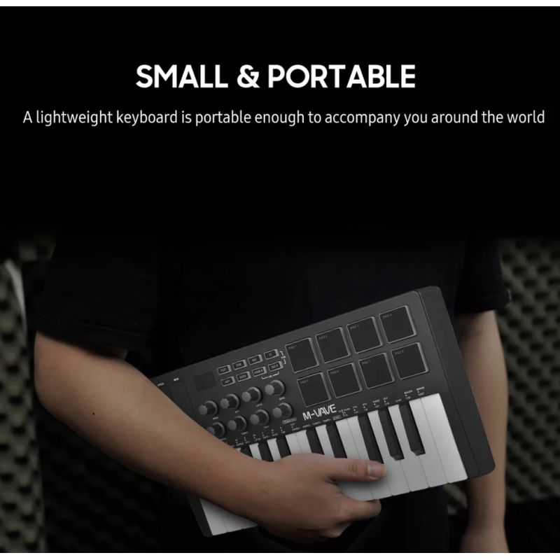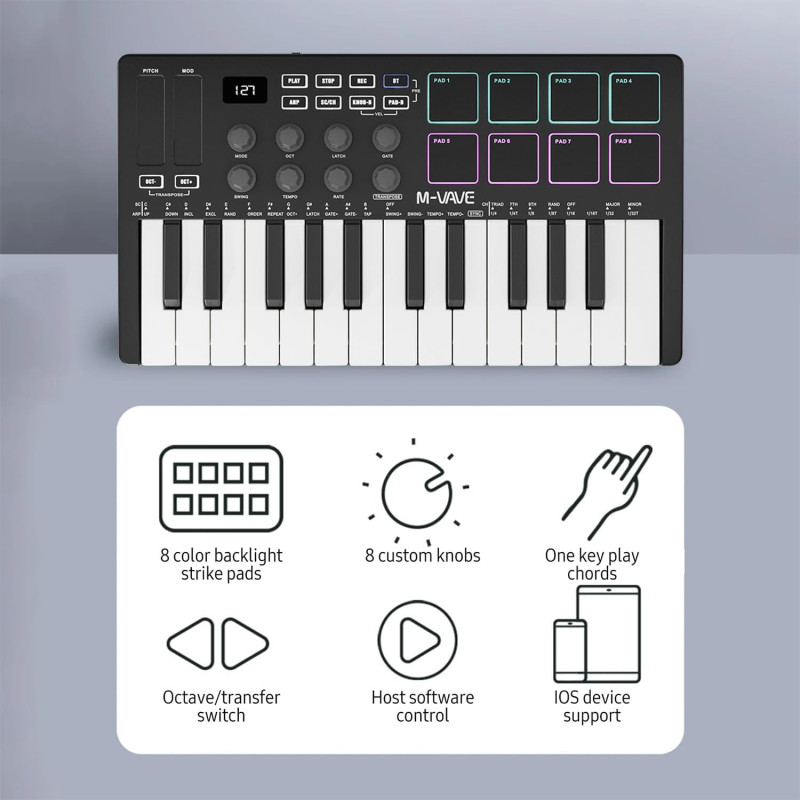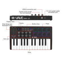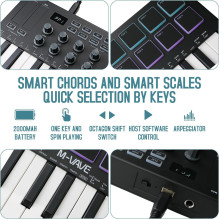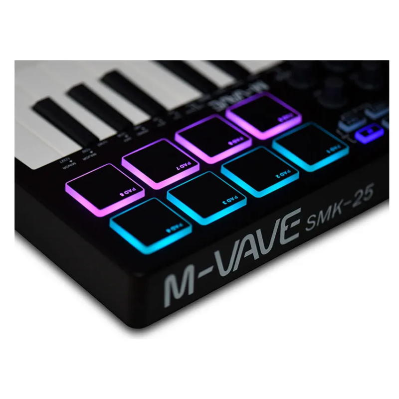 M-VAVE SMK-25 yra modernus USB ir Bluetooth MIDI keyboard kontroleris, skirtas muzikos kūrėjams, DJ, beatmakeriams ir prodiuseriams.