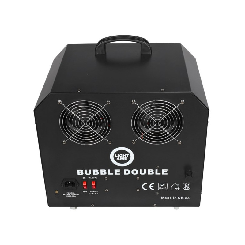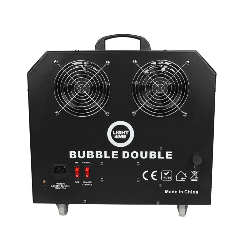 LIGHT4ME Bubble Double yra muilo burbulų generatorius, kurio našumas yra 100 m³/min, o skysčio talpa - 2,5 litro. Jis turi transportavimo ratus, todėl lengvai judinamas, o tipinė energijos sąnauda yra 300 W.