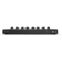Integruoti slankikliai ir rankenėlės suteikia galimybę kontroliuoti muzikos parametrus realiu laiku. Galite reguliuoti efektus, filtrus, garsumą ar kitus DAW parametrus tiesiogiai iš kontrolerio.