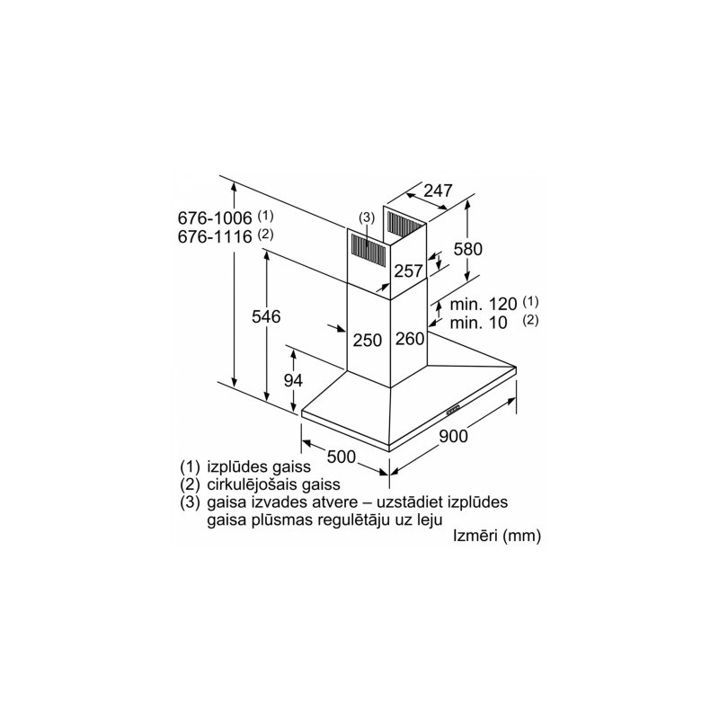 | Tvaika nosūcēja uzstādīšanas veids | Pie sienas |