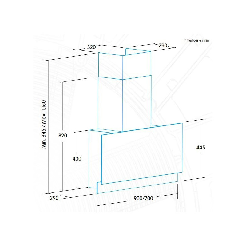 70 cm wide vertical decorative hood