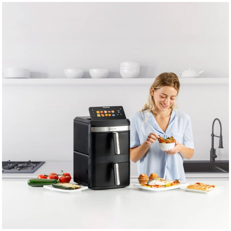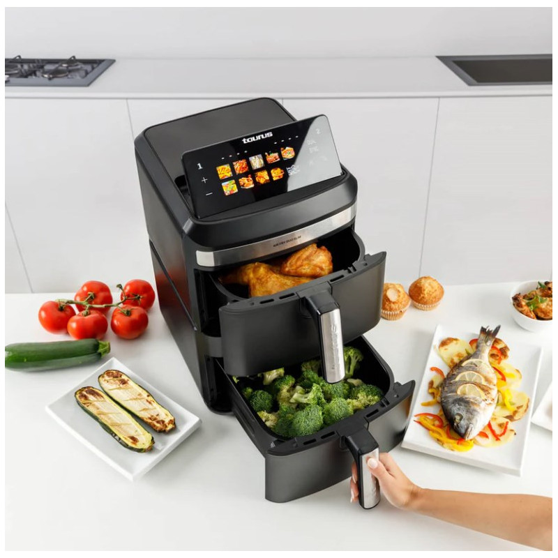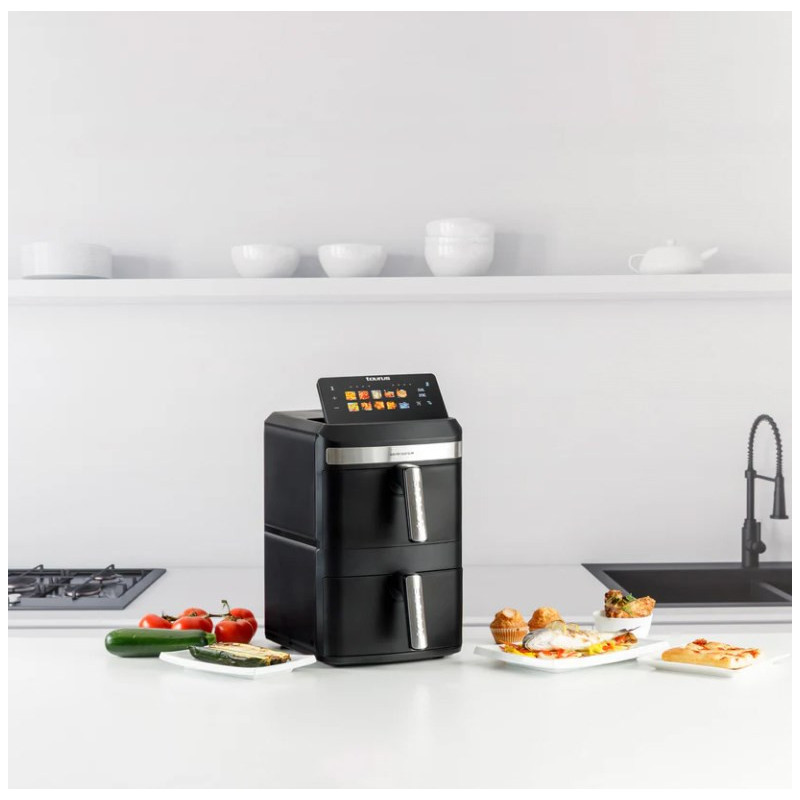 Taurus Air Duo Slim yra karšto oro keptuvė su dviem krepšeliais ir 13 litrų talpa. Ji turi jutiklinį valdymo skydelį, 10 gaminimo programų ir veikia maksimalia 200 °C temperatūra.