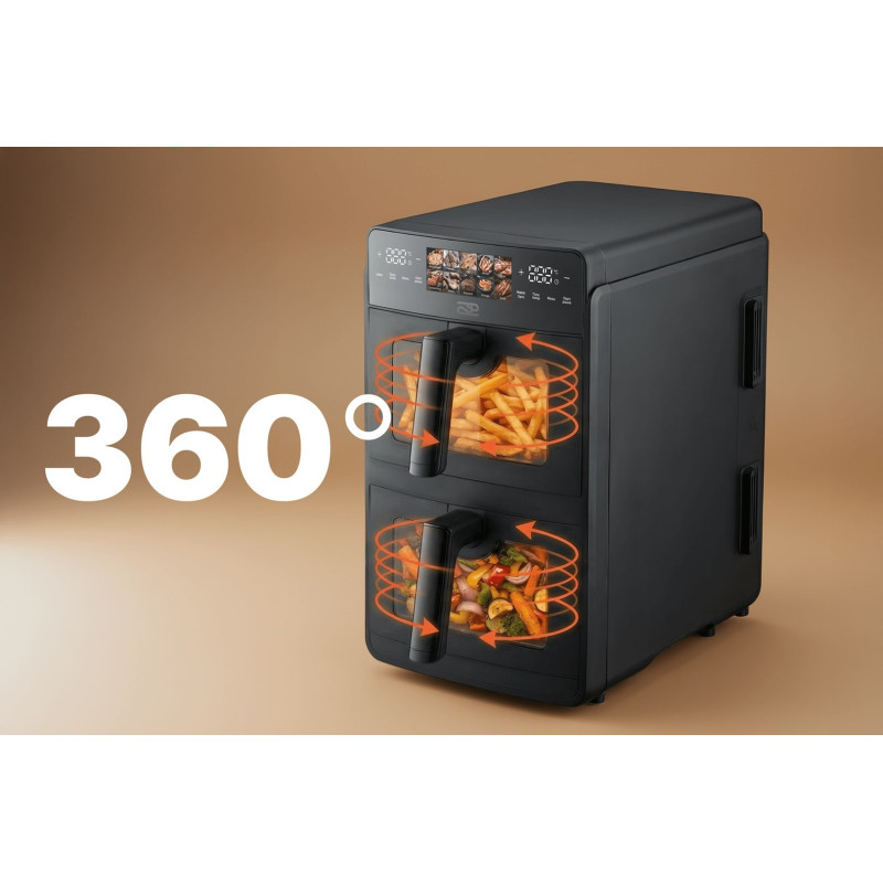 PROMIS Double vertikalus be riebalų keptuvas turi 10 litrų talpą ir veikia temperatūros intervale nuo 80 °C iki 200 °C. Jame yra skaitmeninis laikmatis iki 60 minučių ir nuimamas dubuo, kuris palengvina valymą.