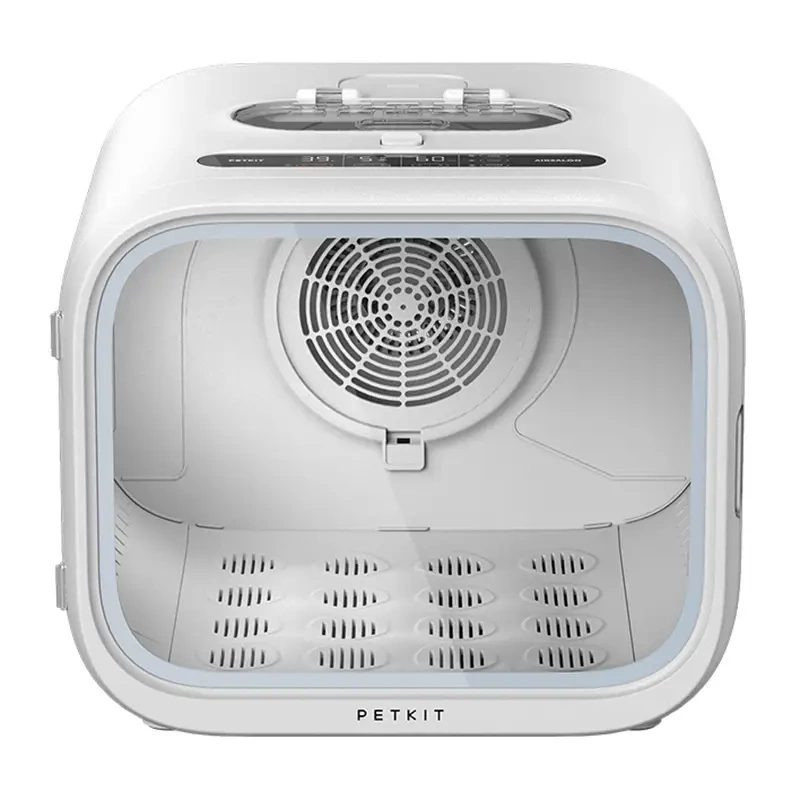 PetKit Airsalon Max yra išmanus gyvūnų džiovintuvas, skirtas katėms ir mažiems šunims, turintis 360° pūtimo sistemą ir 60 litrų talpą. Jis siūlo nuotolinį valdymą per programėlę, reguliuojamą džiovinimo laiką, ventiliatoriaus greitį ir temperatūrą, užtikrindamas saugumą su daugybe jutiklių ir tylų veikimą 45 dB.