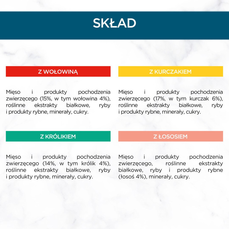 | Naminių gyvūnėlių ėdalo skonis | Jautiena, Triušis, Lašiša, Vištiena |