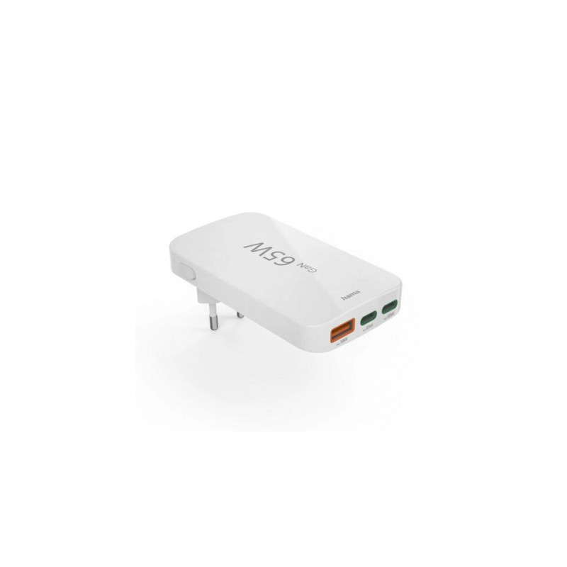 Hama 00201976 Flat Charger 220V With 2xUSB-C / USB-A 65W White