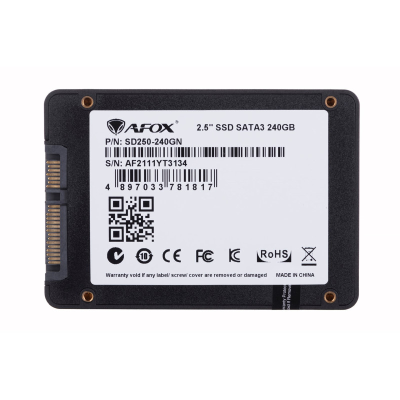 AFOX SSD 240GB užtikrina 555 MB/s skaitymo ir 510 MB/s rašymo greitį, taip pat iki 75,000 IOPS atsitiktinio skaitymo ir rašymo našumą, todėl puikiai tinka greitam duomenų apdorojimui.