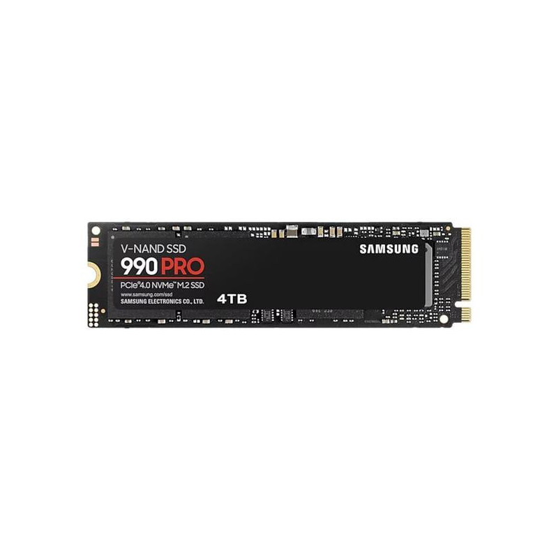 Samsung 990 PRO 4 TB M.2 PCI Express 4.0 NVMe SSD siūlo skaitymo greitį iki 7450 MB/s ir rašymo greitį iki 6900 MB/s. Jame naudojama V-NAND MLC atmintis, 256 bitų AES saugumas, o veikimo temperatūra svyruoja nuo 0 iki 70 °C.