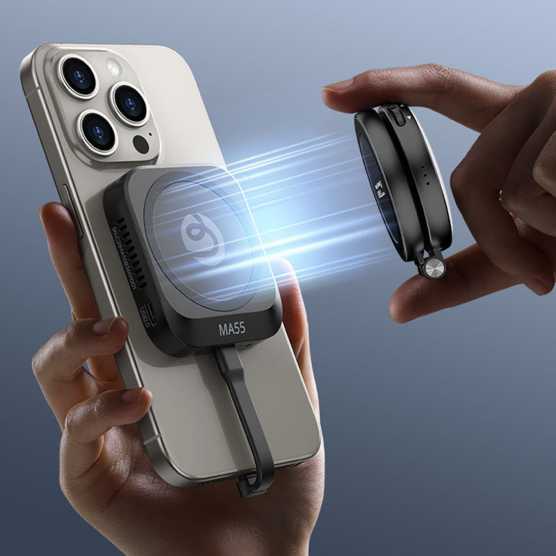 MA55 Magnetic SSD Enclosure leidžia realiu laiku įrašyti 4K ProRes vaizdo įrašus tiesiai į NVMe SSD, kurio maksimali talpa yra 2TB. Jame yra magnetinė konstrukcija, leidžianti lengvai pritvirtinti, aktyvus aušinimas ilgam naudojimui ir duomenų perdavimo greitis iki 10 Gbps.