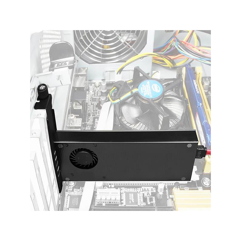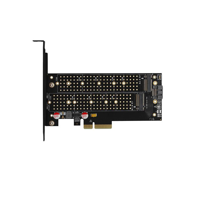 PCI-Express x4 adapteris su aušintuvu, skirtas prijungti prie kompiuterio iki dviejų M.2 diskų. 1x NVMe M raktas + 1x SATA B raktas.