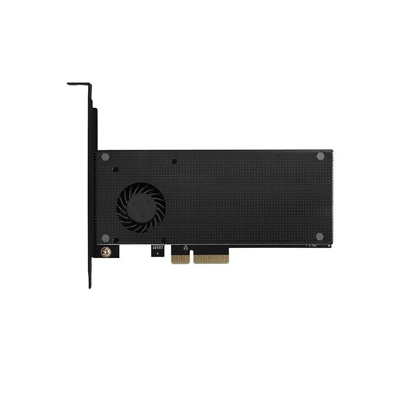 Aukštos kokybės plokštės dizainas, įskaitant variu dengtas ventiliacijos angas, padeda geriau išsklaidyti M.2 SSD diskų veikimo metu susidarančią šilumą. Metalinis dangtelis su ventiliatoriumi ir pritvirtintas pasyvus aušintuvas su šilumos išklotėlėmis padeda aušinti M.2 SSD diskus. Tai idealus pasyvaus ir aktyvaus M.2 SSD diskų aušinimo bei šilumos šalinimo derinys. Dėl aušinimo ir temperatūros sumažinimo iki 35 °C galima išnaudoti maksimalią įdiegtų SSD diskų galią.