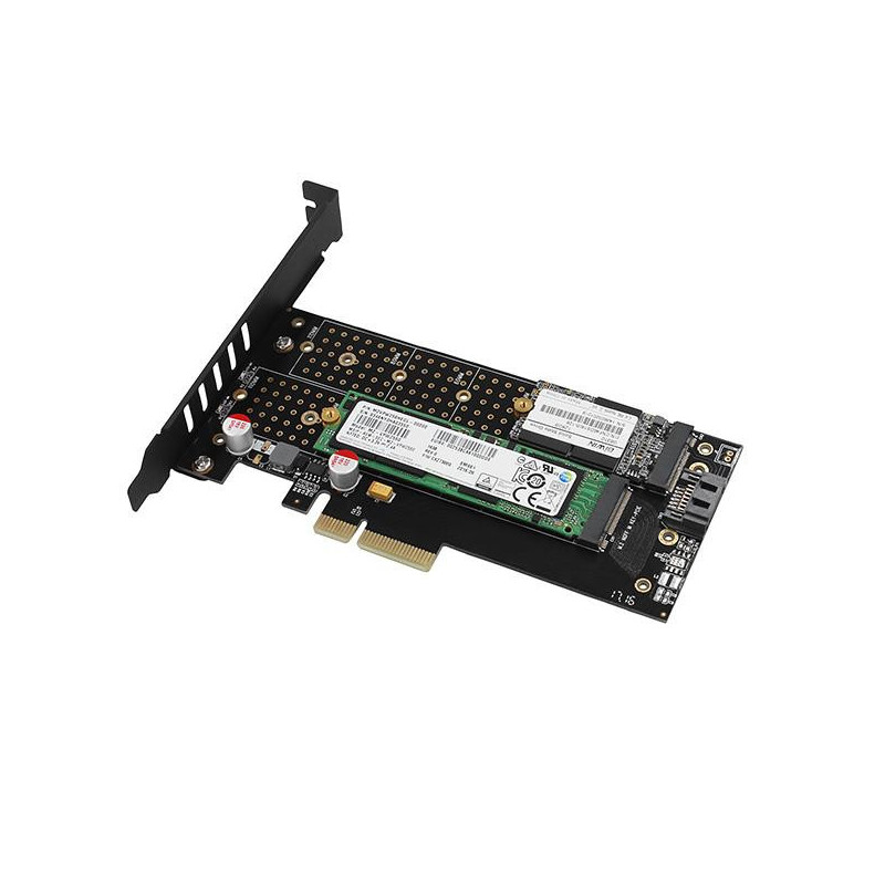 Adapteris palaiko tiek vienpusių, tiek dvipusių SATA ir NVMe (PCI Express) M.2 SSD diskų naudojimą. Sumažinimas neriboja SSD talpos ir galima naudoti bet kokias iki 110 mm ilgio M.2 korteles. Abiejų diskų vienu metu veikimas yra įprastas.