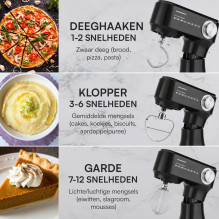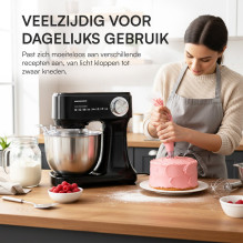 Turėdami 7 greičius ir pulsavimo funkciją, galite visiškai kontroliuoti kiekvieną receptą – nuo minkštų kremų iki kietos duonos tešlos. Maišytuvas yra ne tik galingas, bet ir elegantiško dizaino su modernia juoda apdaila, suteikiančia stiliaus bet kuriai virtuvei. Tvirta konstrukcija garantuoja stabilumą net ir dideliu greičiu.