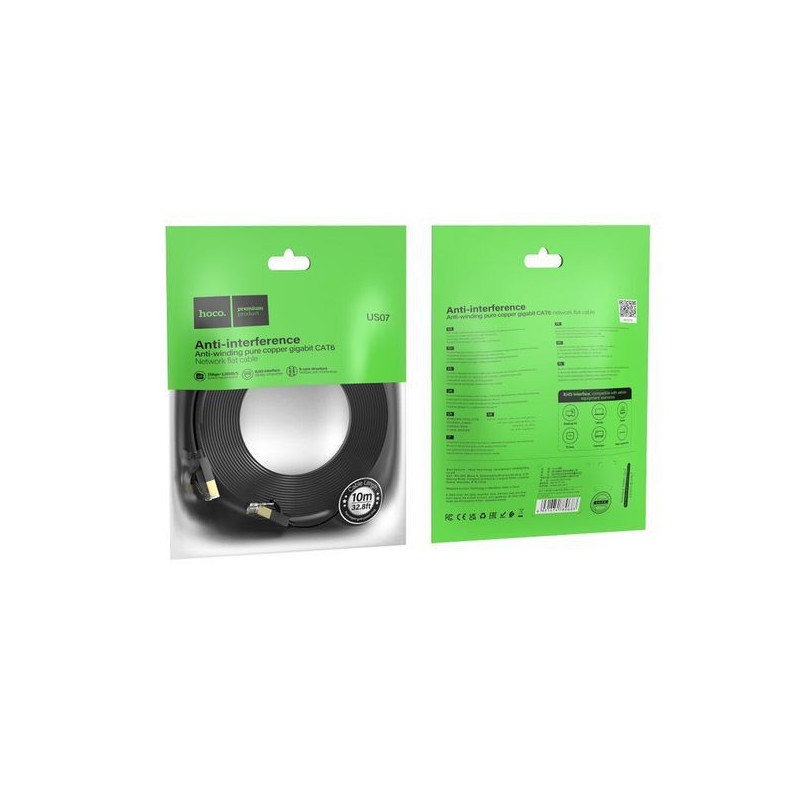 HOCO US07 gryno vario plokščias tinklo kabelis (L=10M), juodas