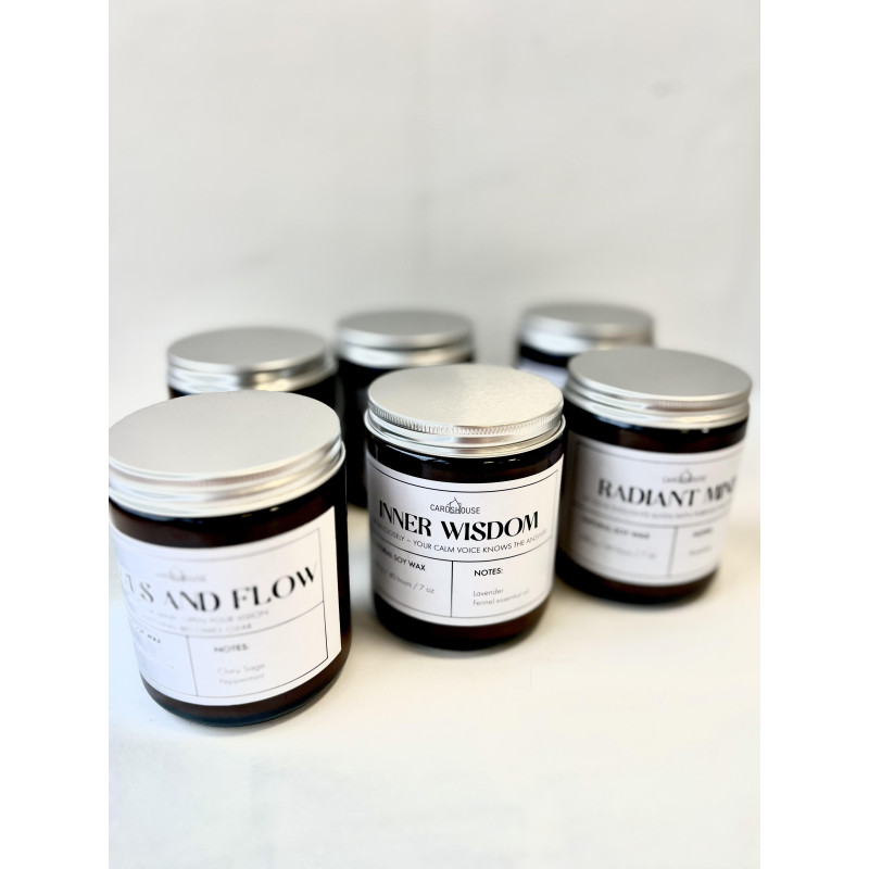 Aromaterapinė žvakė pagaminta iš grynų eterinių aliejų ir natūralaus sojų vaško. Ji dega iki 40 valandų ir turi rozmarinų kvapą.