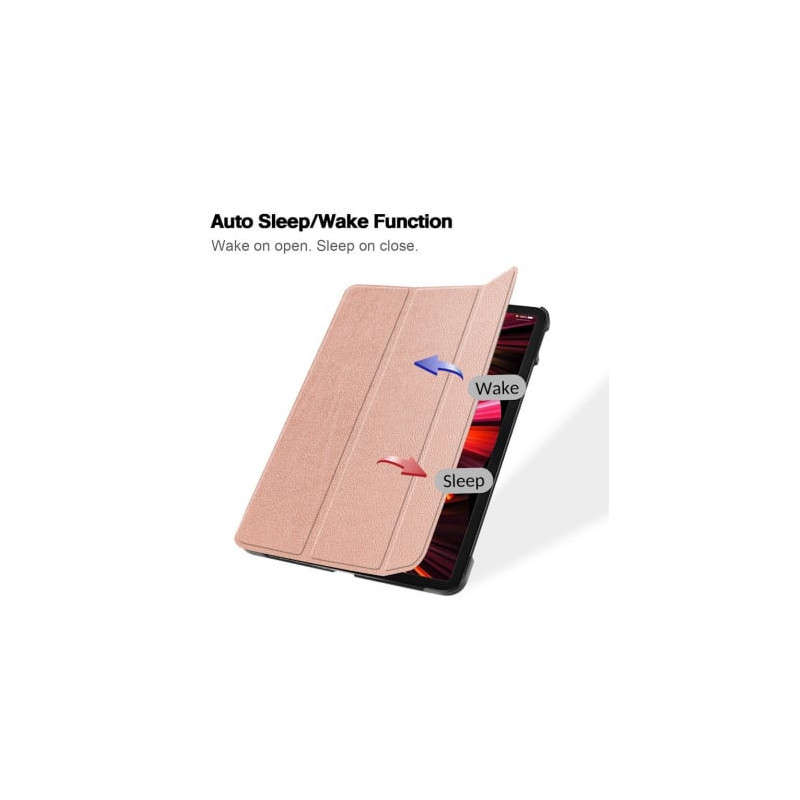 „iLike“ trijų dalių ekologiškos odos dėklas „Samsung Tab A9/A11 8.7“ rožinio aukso spalvos