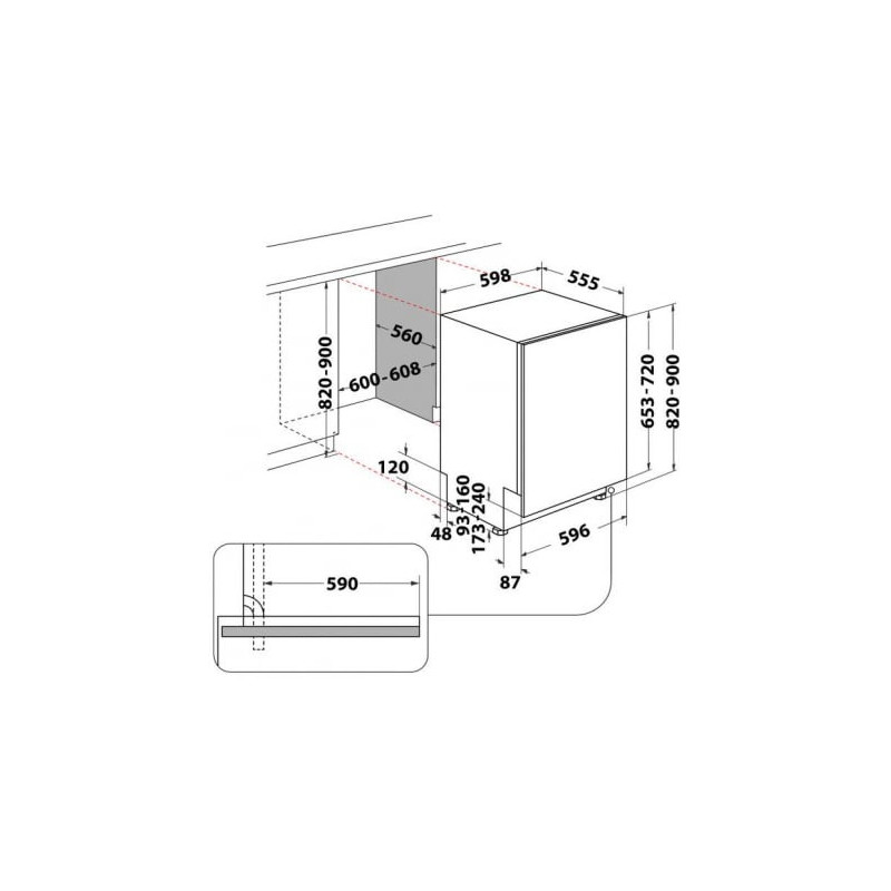WDA07 matmenys (aukštis x plotis x gylis)82–90 x 60 x 55,5