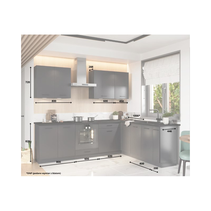 Cosmo Design ANIKA grafito/grafito 2.0/2.6 virtuvės baldų komplektas