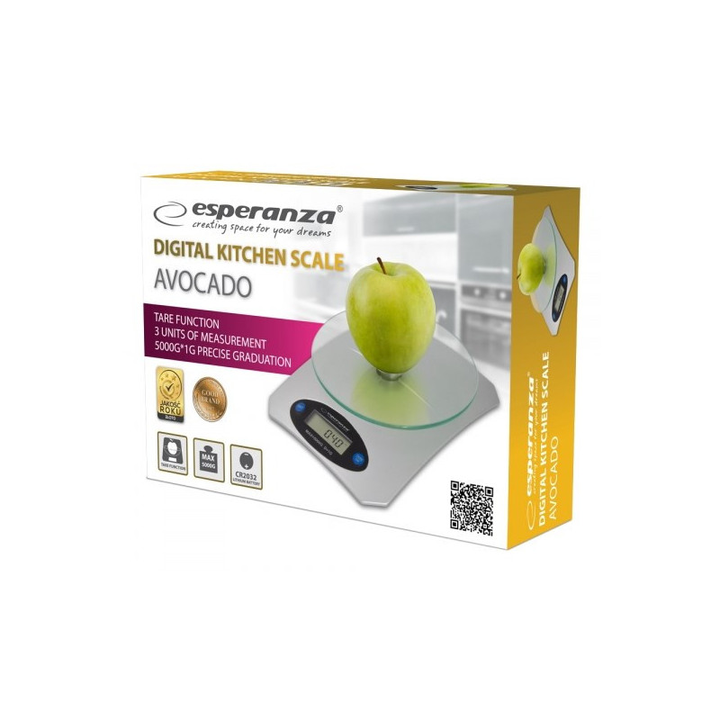 Esperanza Avocado pilkos elektroninės virtuvės svarstyklės
