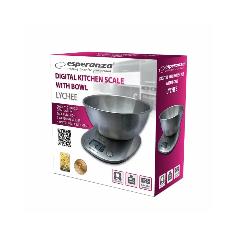 Esperanza LYCHEE metalinės stalviršio ovalios elektroninės virtuvės svarstyklės
