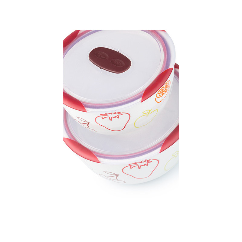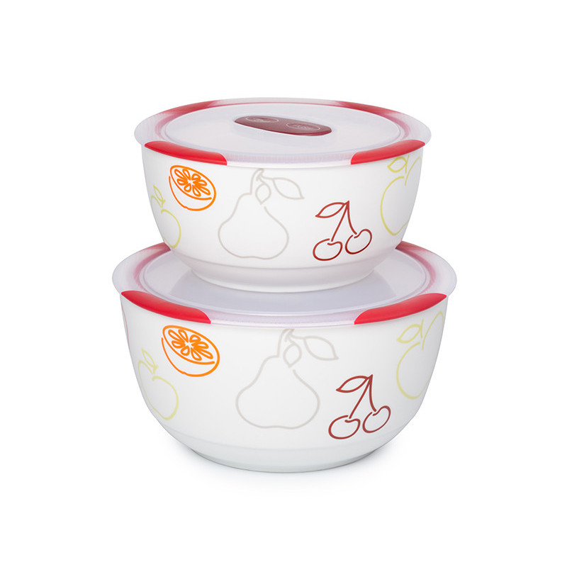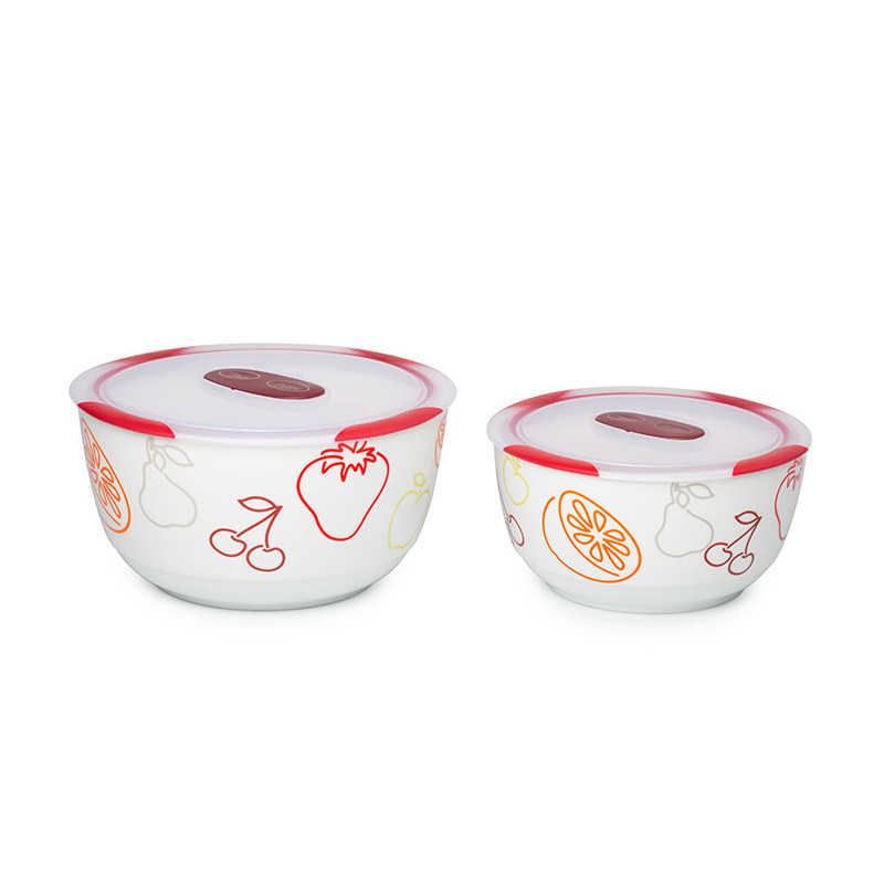 Keraminiai salotų dubenėliai su spalvotais dangteliais ir ryškiais raštais papuoš bet kokį stalą. Dubenėlių keraminė medžiaga gali atlaikyti iki 250 °C temperatūrą, todėl maistą galite patiekti iš karto po kepimo orkaitėje. Dubenėliai aprūpinti patogiais plastikiniais dangteliais su „Clip Fresh“ technologija, kuri leidžia jūsų indams ilgiau išlikti šviežiems, jei jie laikomi šaldytuve. Bet kuriame iš jų taip pat galite laikyti skysčius, nes jie neišsilies dėl silikoninės gumos, užtikrinančios 100 % sandarumą. Dubenėlius galima sulankstyti vieną į kitą, todėl juos patogu laikyti – jie užima labai mažai vietos.