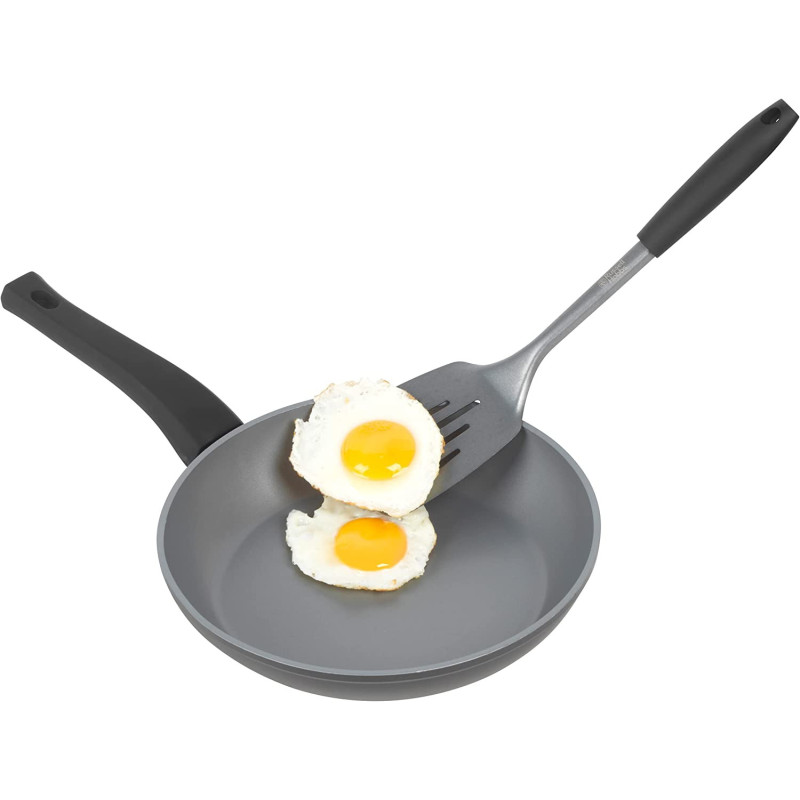 Šie virtuvės reikmenys su juodomis ergonomiškomis minkštomis rankenomis yra neįtikėtinai lengvai naudojami ir manevruojami virtuvėje.