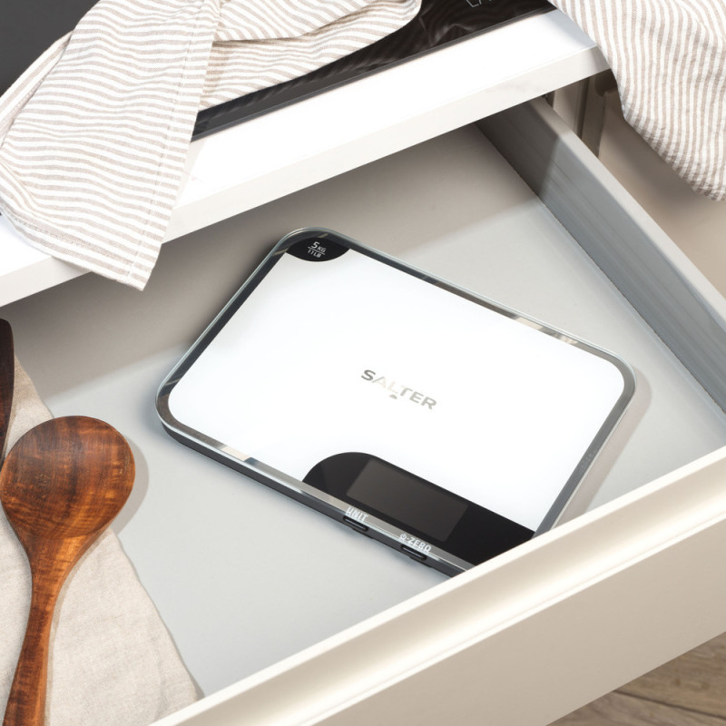 Salter 1064 WFEU12 Mini-Max skaitmeninės virtuvės svarstyklės, 5 kg, baltos