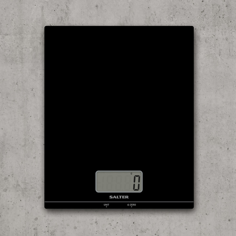 Tvarkingos ir elegantiškos „Salter“ didelės platformos elektroninės svarstyklės yra puikus virtuvės prietaisas visiems kepėjams, ieškantiems tobulo tikslumo.