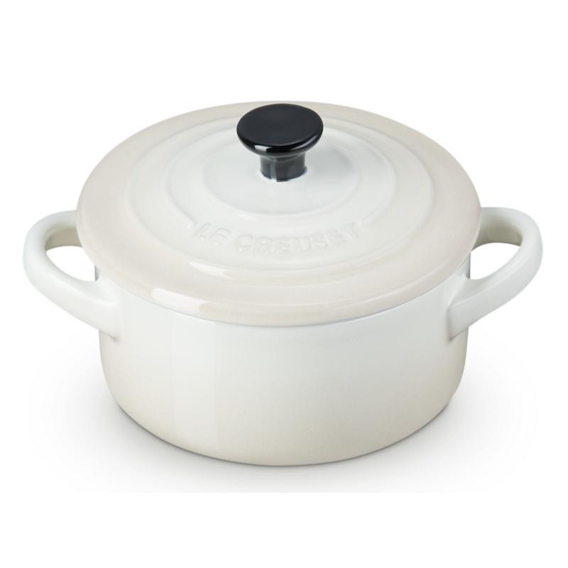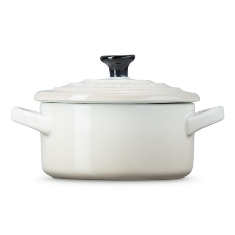 Le Creuset Petite Casserole talpa yra 0.25 litro, pagaminta iš keramikos su emalio danga. Ji turi dvi rankenas, dangtį ir matmenis: 138 mm pločio, 44 mm gylio ir 81 mm aukščio.