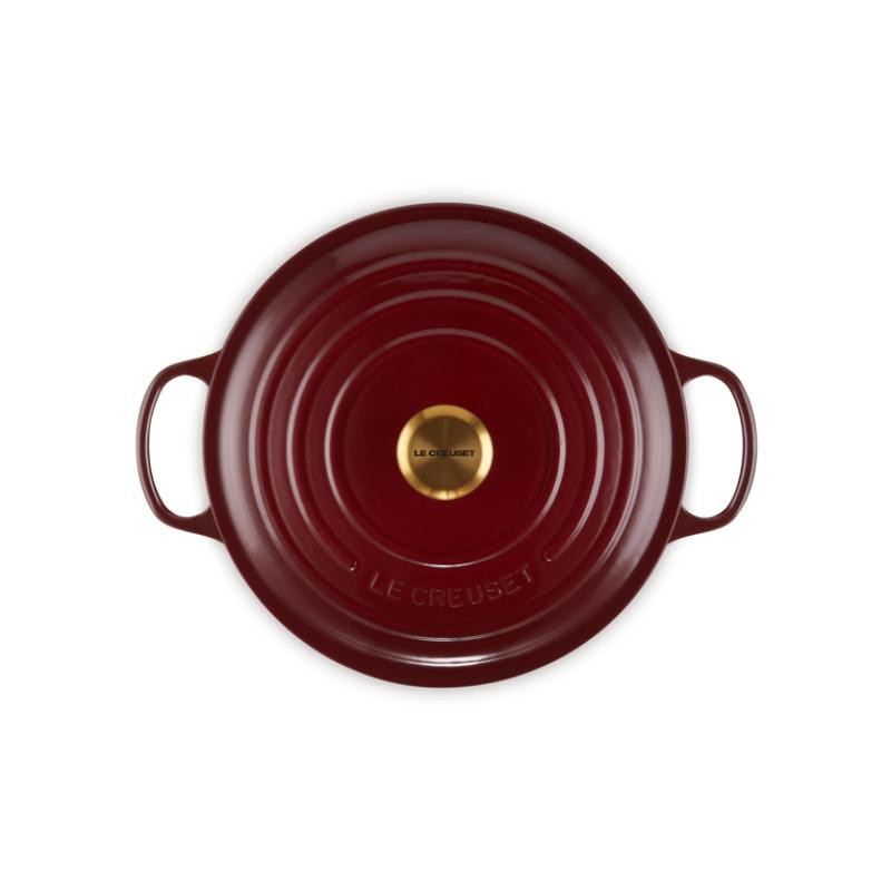Le Creuset Signature roaster turi 6,7 litro talpą ir yra pagamintas iš ketaus su emalio danga. Tinka įvairioms virimo paviršiams, saugus plauti indaplovėje ir atlaiko temperatūras iki 260 °C.