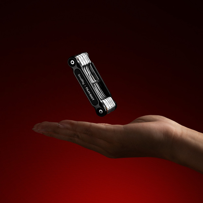 SmallRig x FILM RIOT 10 in 1 Detent Folding Multi Tool Kit apima šešis šešiakampius raktus, plokščią raktą, du kryžminius raktus ir Torx T25 raktą, skirtus foto ir vaizdo įrangai. Jo kompaktiškas sulankstomas dizainas ir patvarios medžiagos užtikrina patogumą ir patikimumą montavimo bei demontavimo užduotims.