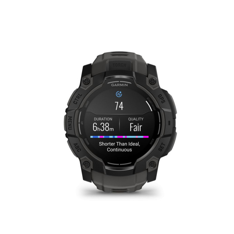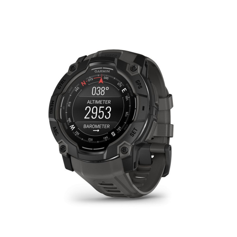 „Garmin Instinct 3“ – 50 mm, AMOLED juodas su tamsiai pilkos spalvos dirželiu / 010-03020-00
