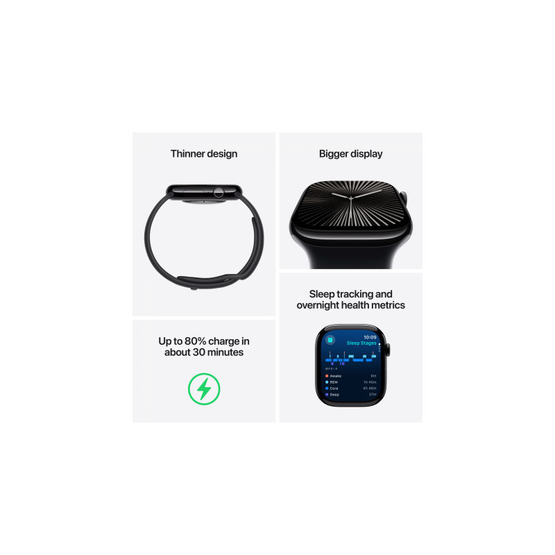 „Apple Watch Series 10 Cellular“ 42 mm juodos spalvos / rašalinis dirželis
