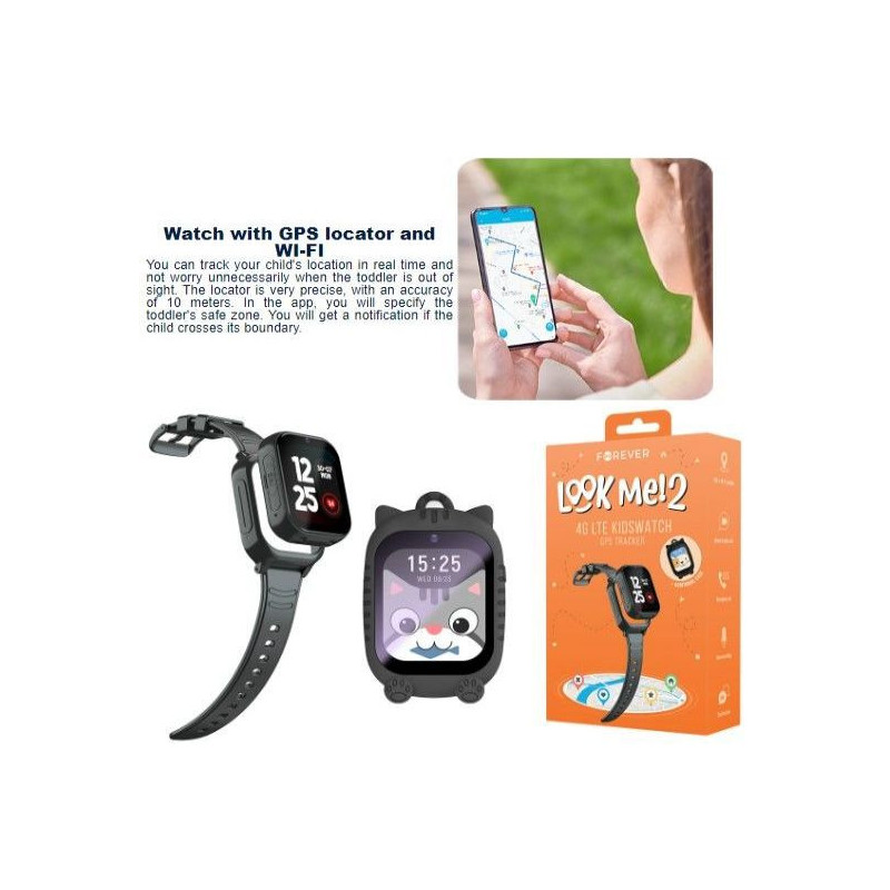 Išmanieji laikrodžiai Forever Smartwatch GPS WiFi 4G Kids KW-510 Black