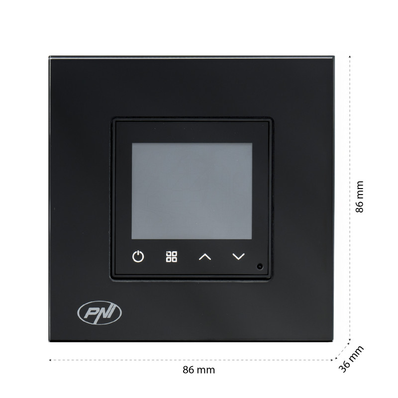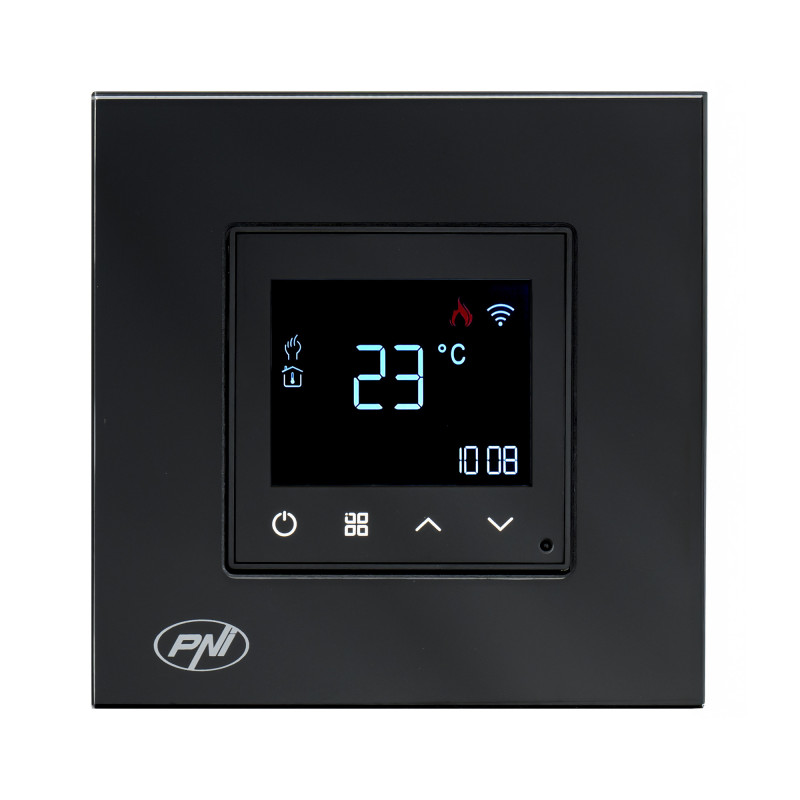 Išmanusis termostatas PNI CT25B WiFi dujiniam šildymo įrenginiui, įleidžiamas montavimas, 16A, valdymas iš „Tuya Smart“ programos, kasdienis programavimas, rankinis/automatinis režimas, juodos spalvos