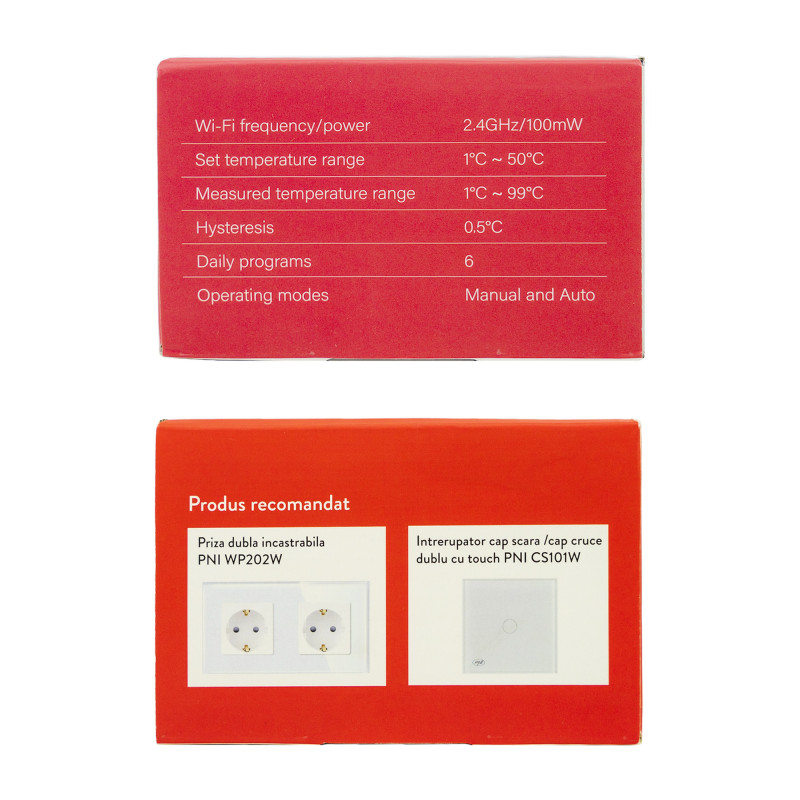 Išmanusis termostatas PNI CT26W WiFi elektrinis grindų šildymas arba siurbimo grupė, grindų jutiklis komplekte, 10A, įleidžiamas montavimas, valdymas iš „Tuya Smart“ programos, kasdienis programavimas, rankinis / automatinis režimas