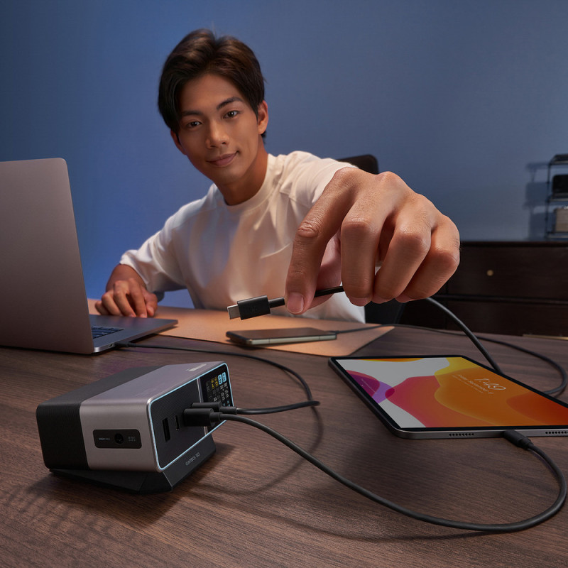 USB-C, USB-A ir nuolatinės srovės prievadų derinys suteikia didelį lankstumą, todėl galite maitinti nešiojamąjį kompiuterį, išmanųjį telefoną ir kitus priedus neatjungdami laidų.