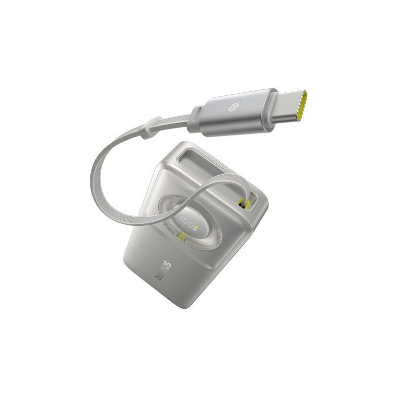 Išorinė baterija Baseus "Free2Pull" pilkas 10000mAh 30W (PD) + integruotas "Type-C" laidas