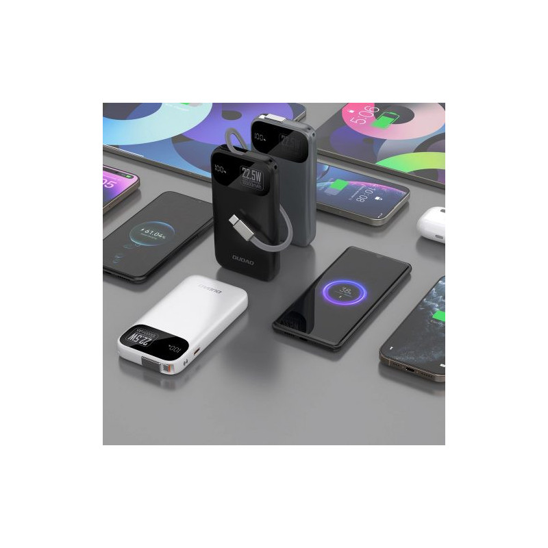 Išorinė baterija Dudao "K31" juodas 10000mAh 22.5W (PD) + integruotas laidas
