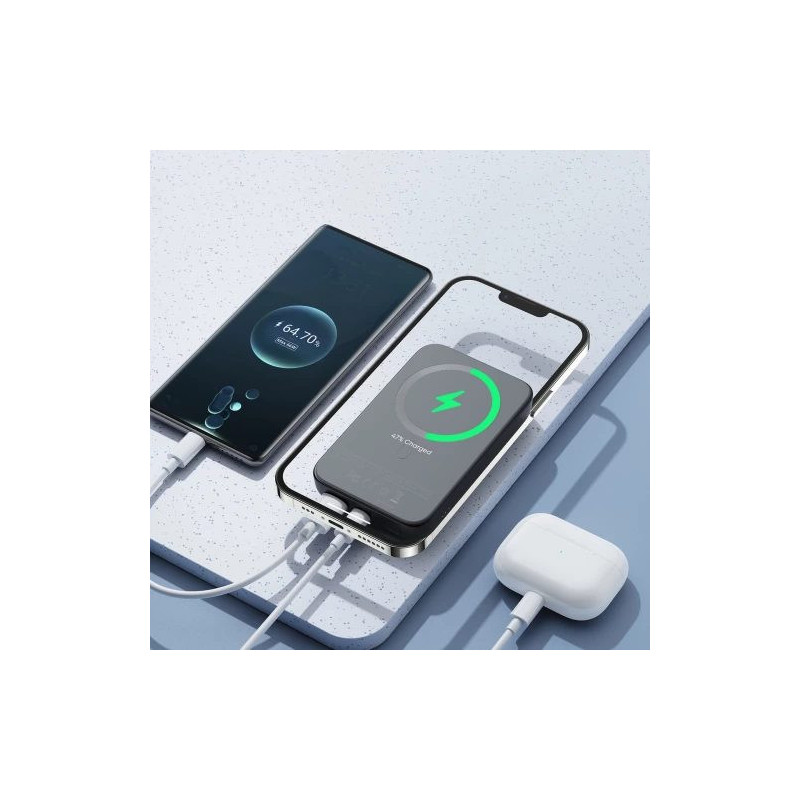 The Joyroom JR-W020 powerbank allows you to quickly charge three devices at the same time. It works with MagSafe technology and has USB-A and USB-C connectors. Supports fast charging protocol - Power Delivery. It has a capacity of 10,000 mAh, so it allows you to charge your smartphone, headphones or small electronic devices.