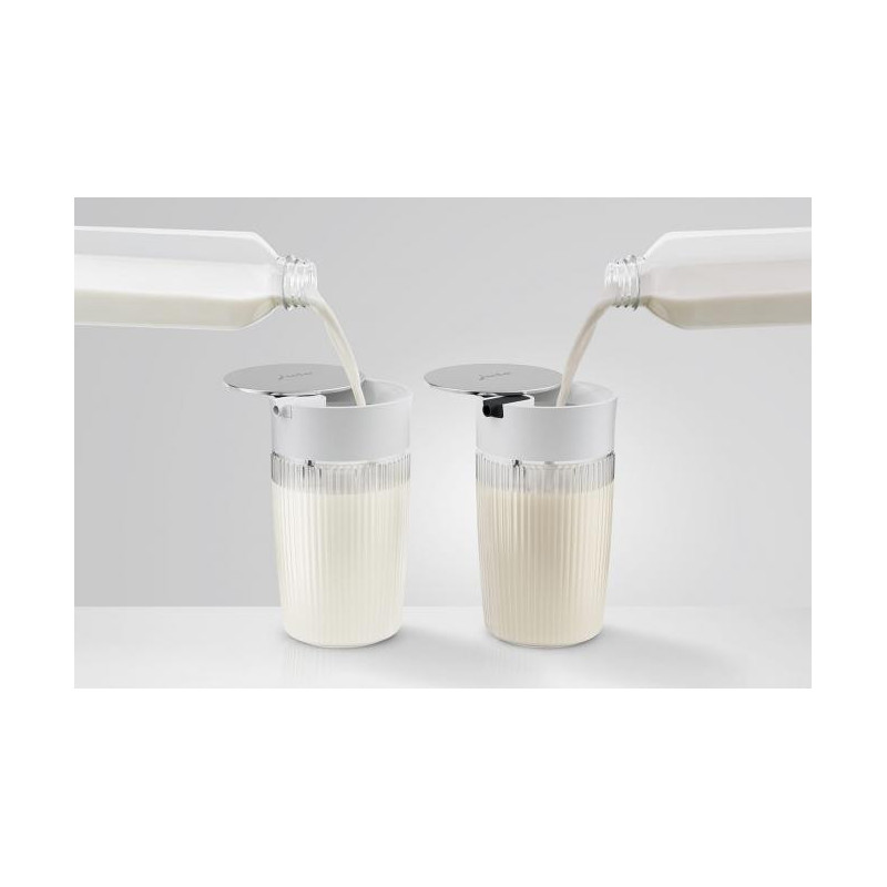 Pieno grafinas yra stilingas JURA automatinių kavos aparatų priedas, Kiekvienam, kas mėgsta pasilepinti kava su pienu arba pieno alternatyva. Pagamintas iš borosilikatinio stiklo, pieno grafinas yra atsparus temperatūros svyravimams ir įbrėžimams. Tinka higieniniam valymui indaplovėje, apsaugo pieną ir pieno alternatyvas nuo kvapų ir išlaiko juos šviežius. Dėl storo pagrindo grafinas yra tvirtas ant bet kokio paviršiaus, o briaunotas paviršius suteikia jam ypač elegantišką išvaizdą. Talpa 0,5 l