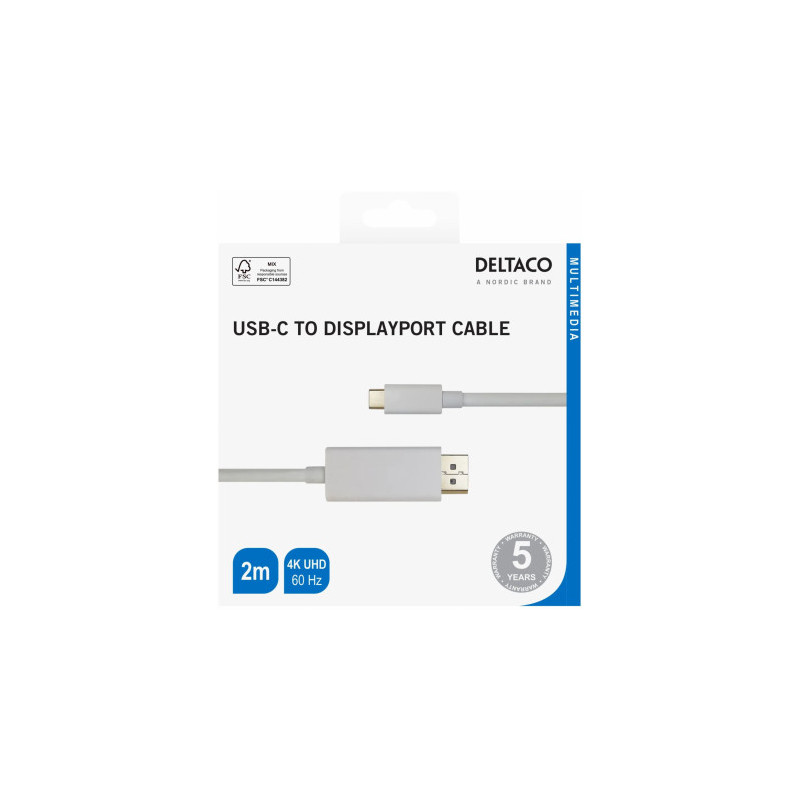 „Deltaco“ USB-C - DisplayPort 2m, baltas