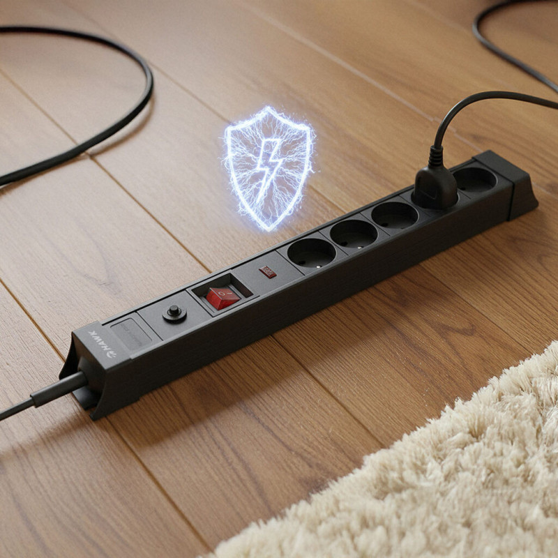 Padidinkite savo elektronikos saugumą naudodami HWPS503BK viršįtampių apsaugą.