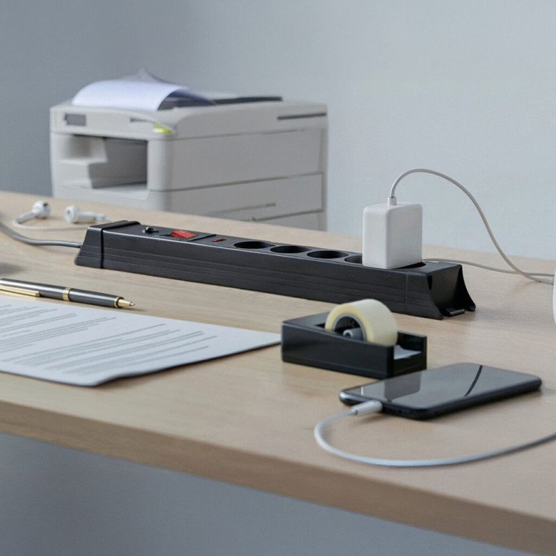Įrengtas 5 įžemintais lizdais, 545 J apsauga nuo viršįtampių, 16 A automatiniu saugikliu ir apšviestu automatiniu jungikliu, jis užtikrina aukštą apsaugos lygį namuose, biure ir darbo vietoje.