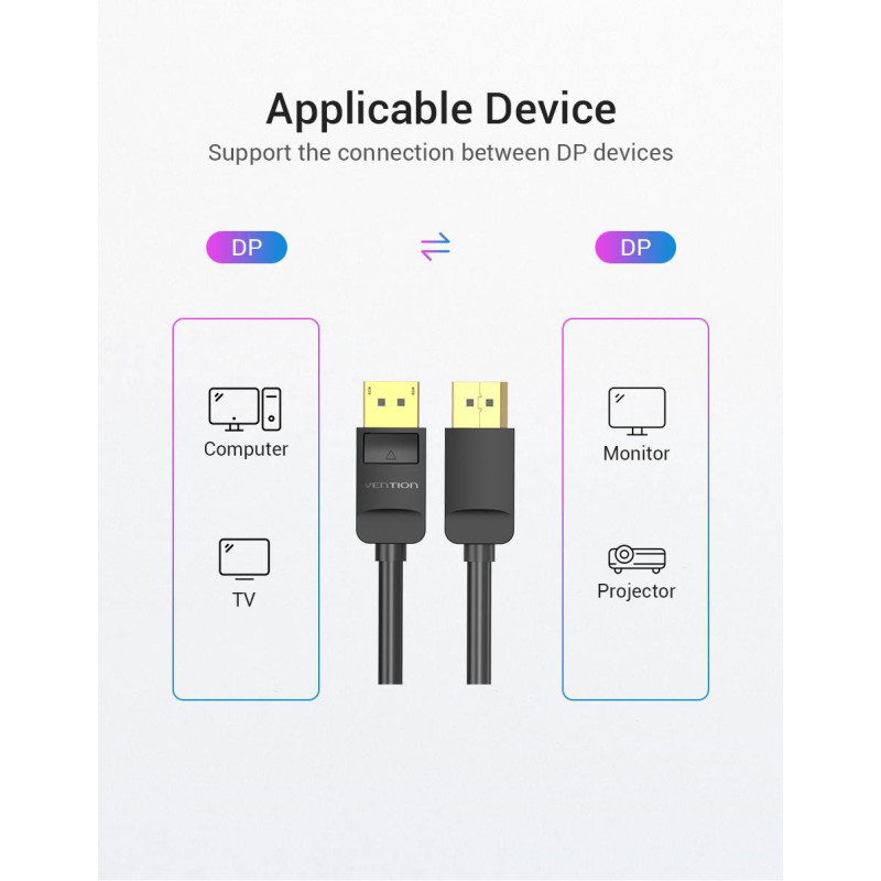 - 4K raiška: „DisplayPort“ 1.2 kabeliai palaiko iki 4K ir 1080P vaizdo skiriamąją gebą, taip pat nesuspaustą skaitmeninį 7.1, 5.1 arba 2 kanalų puikų garso perdavimą.