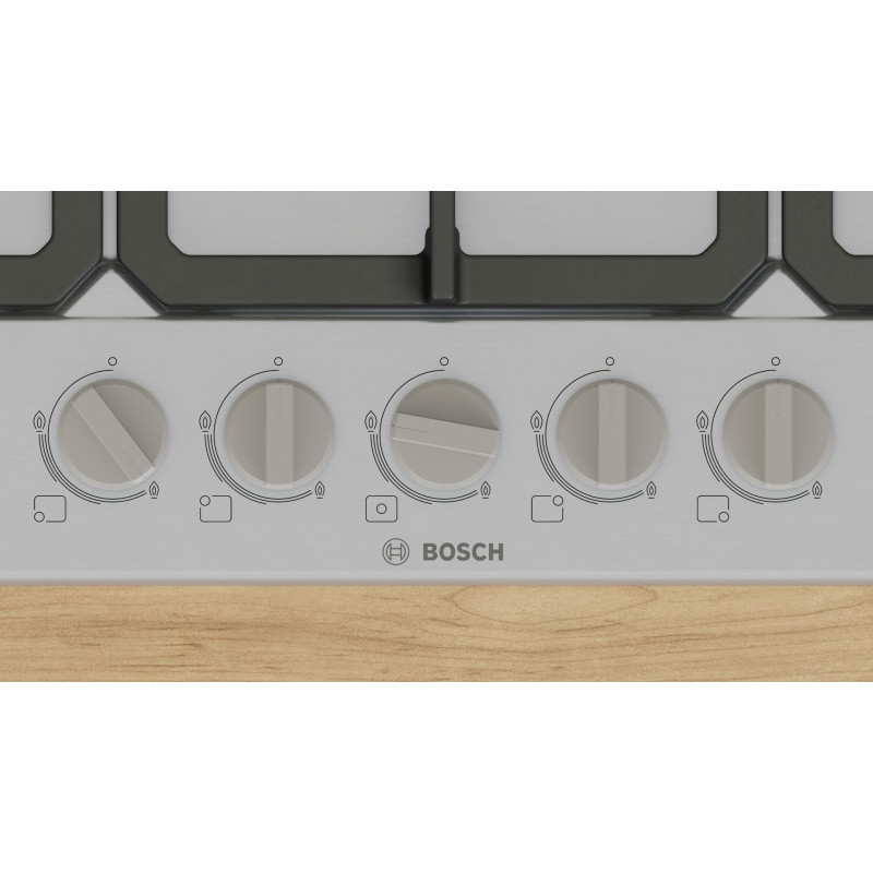 Bosch Serie 4 PGQ7B5K90 viryklė turi penkias dujines virimo zonas, kurių bendra galia siekia 10 800 W, ir yra pagaminta iš nerūdijančio plieno. Ji taip pat turi elektroninį uždegimą, liepsnos gesimo įrenginį ir 75 cm pločio dizainą.